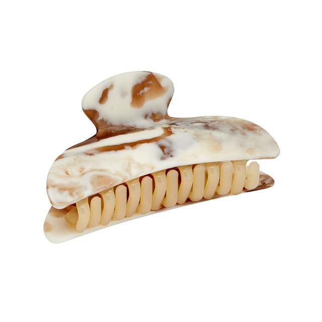 【アイテム紹介】 ボリュームのあるヘアクリップ。フルアップヘアやロングヘアにおすすめです。 上質なイタリア製アセテートを使用して丁寧に手作りされており、安定感のある付け心地です。 【サイズ・商品詳細】 素材:セルロースアセテート 原産国:イタリア サイズ:縦約5cm×横9.5cm 【MACHETE】 製品は全て、天然で再生可能な素材と責任ある製造方法で作られた厳選されたジュエリーとアクセサリーを展開。天然で再生可能なセルロース アセテートとバイオ アセテートのみから作られており、輸送関係においても環境に優しい方法で行われている。