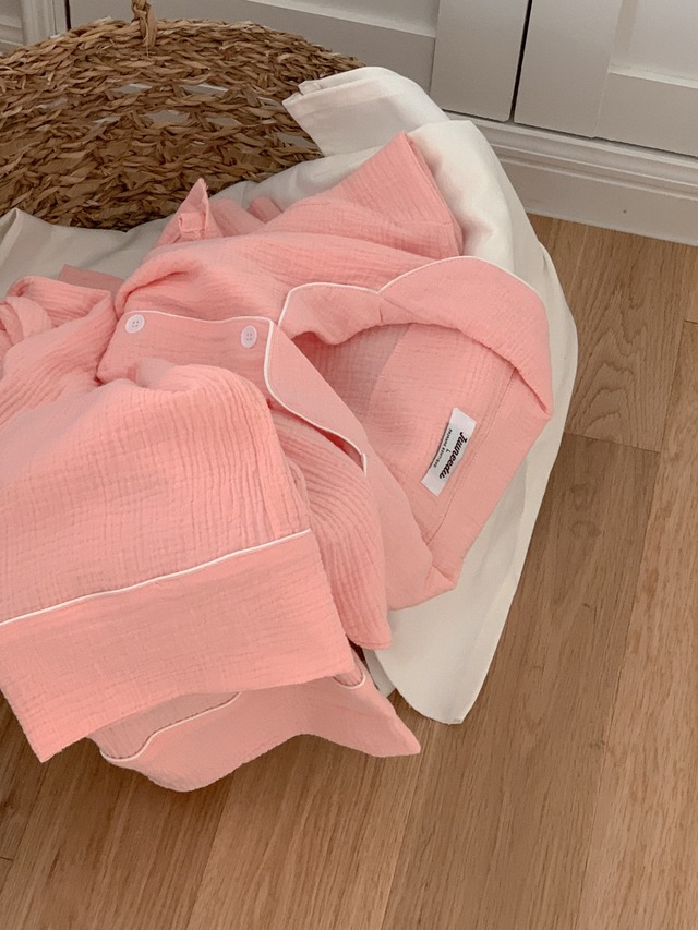 【商品紹介】 Juuneeduの定番モデルの7dayspajama。 各カラーの優しい色合いと白のパイピングのコントラストが可愛く、シンプルだけど絶妙なカラーリングが人気の理由。 友達や恋人と一緒にお気にいりの色を是非見つけてみてくださいね! 【サイズ・商品詳細】 素材:コットン100% 原産国:中国 TOPS: 胸囲/着丈/肩幅/袖丈/袖幅 Lサイズ:118/64/53/50/24 XLサイズ:124/73/57/56/27 PANTS: 股上/ウエスト/もも回り/ヒップ/総丈 Lサイズ:33/60/58/104/92 XLサイズ:35/68/64/112/190 ※ウエストはゴム仕様のため、幅がございます。 ※測定の方法により、若干サイズに誤差が生じる場合がございます。ご了承くださいませ。 ※洗濯機を使用の際には、上下ともにネットに入れてください。 ※縮む可能性がございますので、乾燥機の使用はお控えください。 【JUUNEEDU】 韓国にある店舗は、日本人から韓国旅行で行くべきスポットとして今注目のパジャマブランド「juuneedu」。2021年に韓国でスタートし、どんな瞬間も可愛いくいたい女性のため、快適で上質なパジャマを提供している。メンズも着られるカップルパジャマも充実。