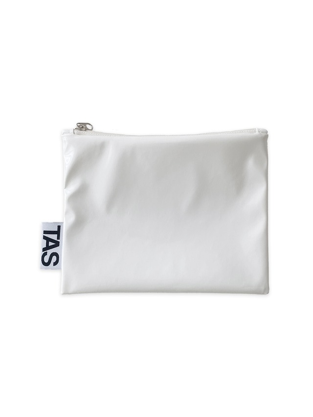【商品紹介】 光沢感が魅力的なTASシグネチャー素材で作られたポーチ。 柔らかな手触りと軽さが特徴。 両サイドのジップディテールや、筒縫いベースの丁寧な裏地仕上げにより、コンパクトながらもしっかりとした作りを実現しています。 Mサイズはコスメポーチなどにぴったりのサイズ感です。 【サイズ・商品詳細】 素材:エナメル サイズ:横17cm 縦13,5cm ※サイズは多少誤差がある場合がございます。 ※汚れが気になる場合は、濡れた布で拭いた後、乾いた布で拭きとってください。