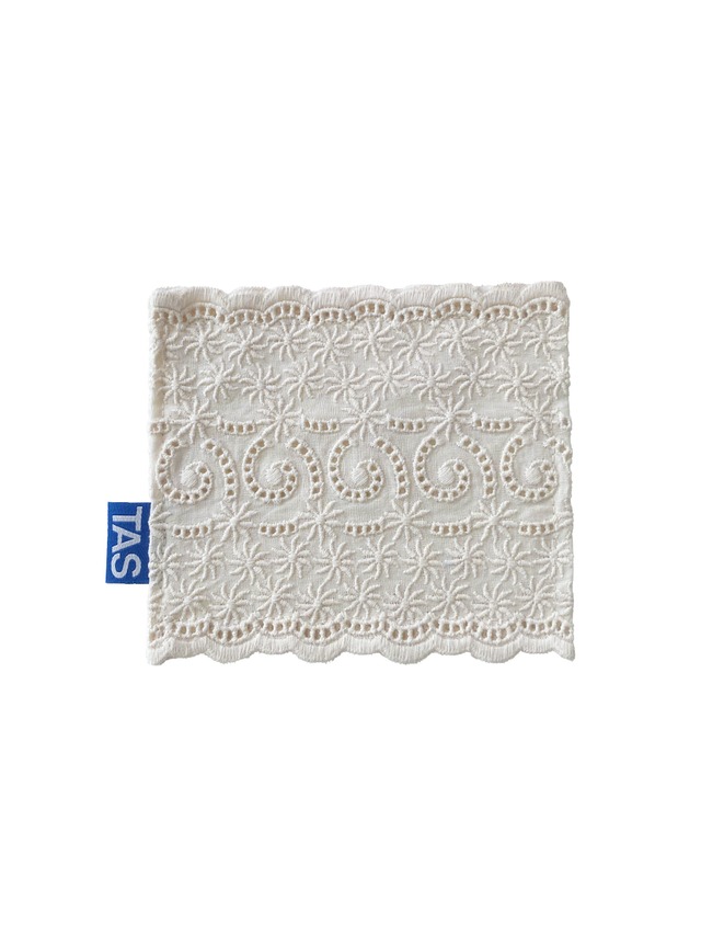 【商品紹介】 パンチングレース素材でつくられたバッグ。 チャーム部分にはTASロゴが刻まれているのがワンポイント。 iPadや書類なども入る、普段使いにぴったりなサイズ感のバッグです。 【サイズ・商品詳細】 素材:綿100% サイズ:縦30cm 横24cm 紐の長さ85cm ※サイズは多少誤差がある場合がございます。 【お手入れ方法】 ・洗濯機を使用する場合は洗濯ネットを使用し、単独洗いしてください。 ・乾燥機を使用する際は低温で使用してください。(45度以下) ・漂白剤は使用しないでください。