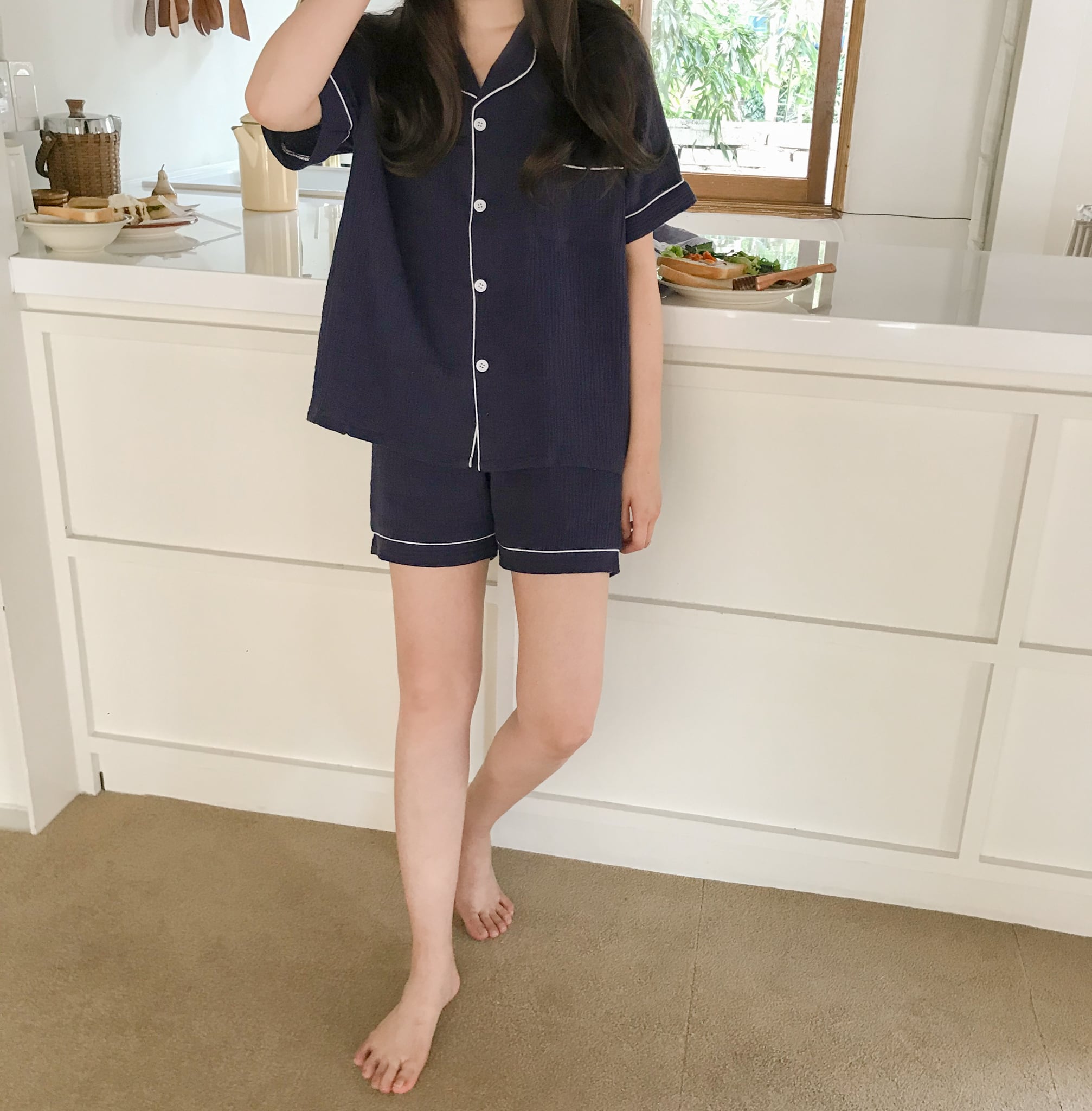 Sevendays Short-sleeved Pajamas 〈Navy〉