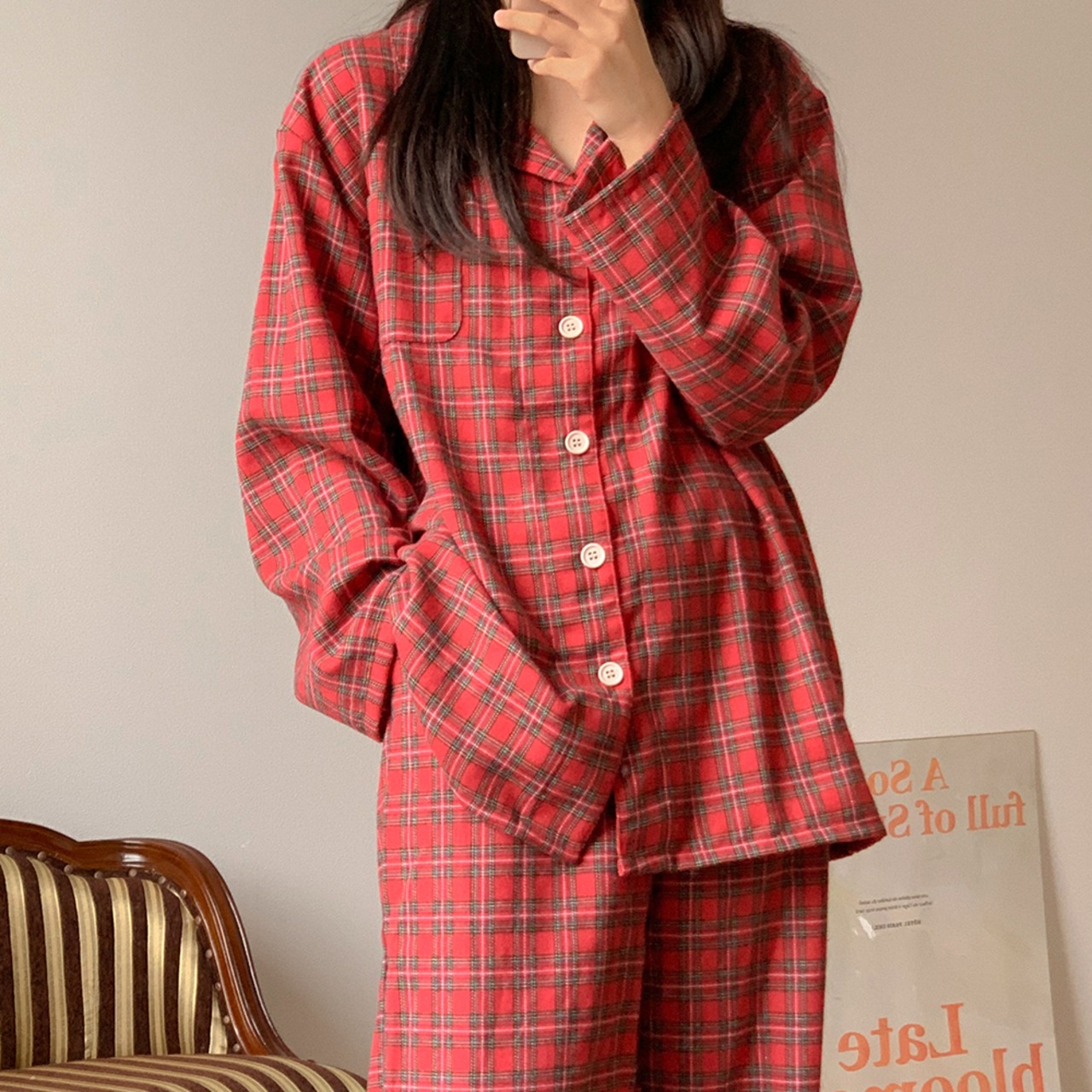 冬らしいカラーとタータンチェックがかわいいパジャマ。