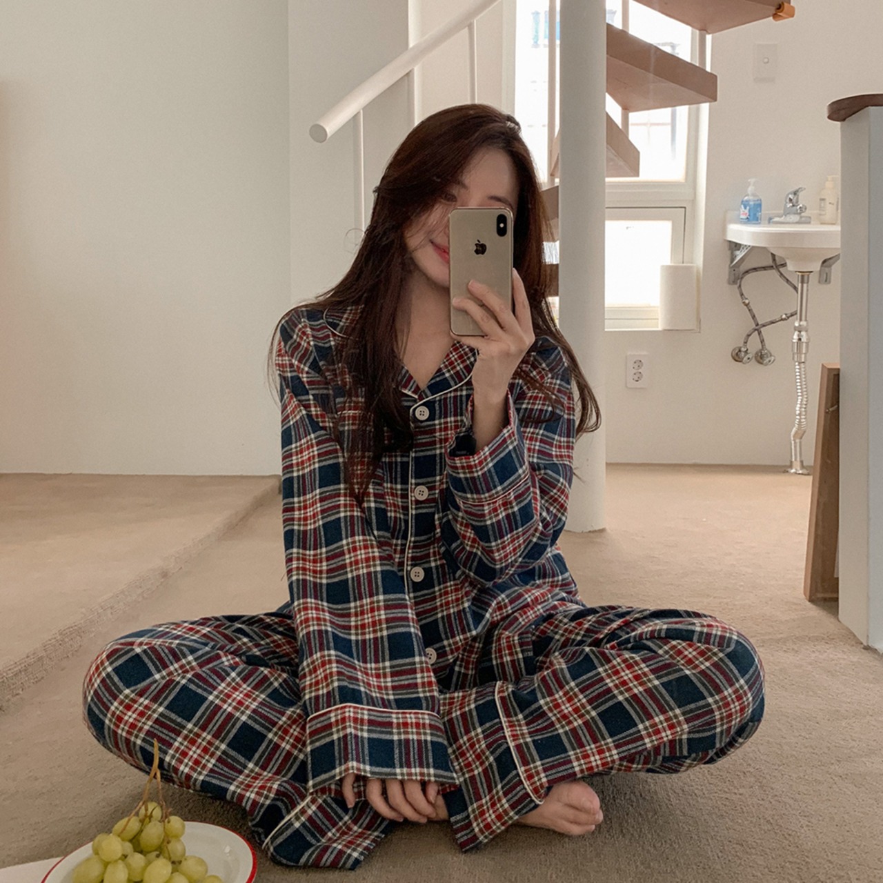 ネイビー×レッドの色合いがかわいいタータンチェックのパジャマ。コットン100%で着心地も抜群◎ゆったりと着られるLサイズと男女兼用でも着られるXLサイズの2サイズ展開です。