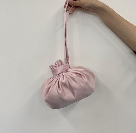 コロンとしたフォルムが可愛いポーチ。艶のあるサテン素材を使用したこのアイテムは全4色で展開。ポーチとしてだけでなく、結び目を変えてミニバッグとしても使える2WAY仕様です。