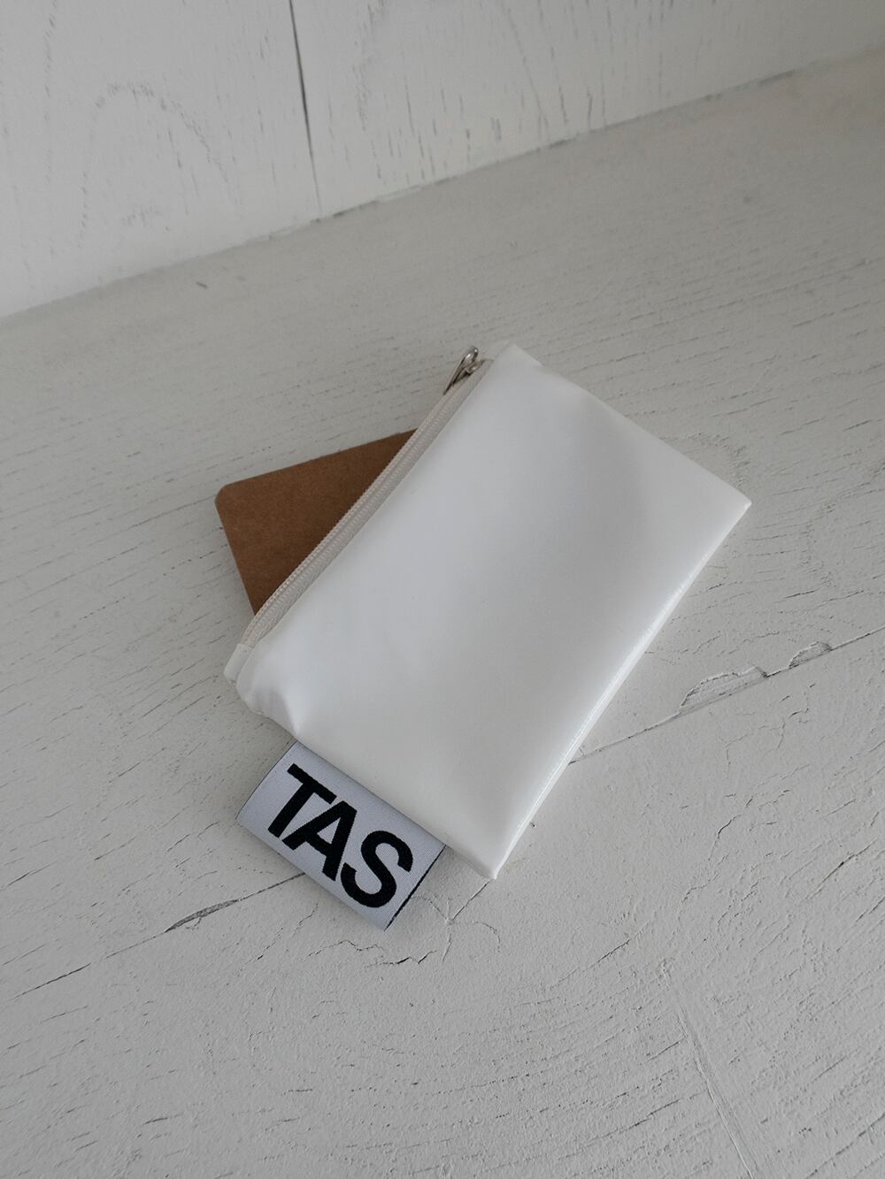 光沢感が魅力的なTASシグネチャー素材で作られたポーチ。