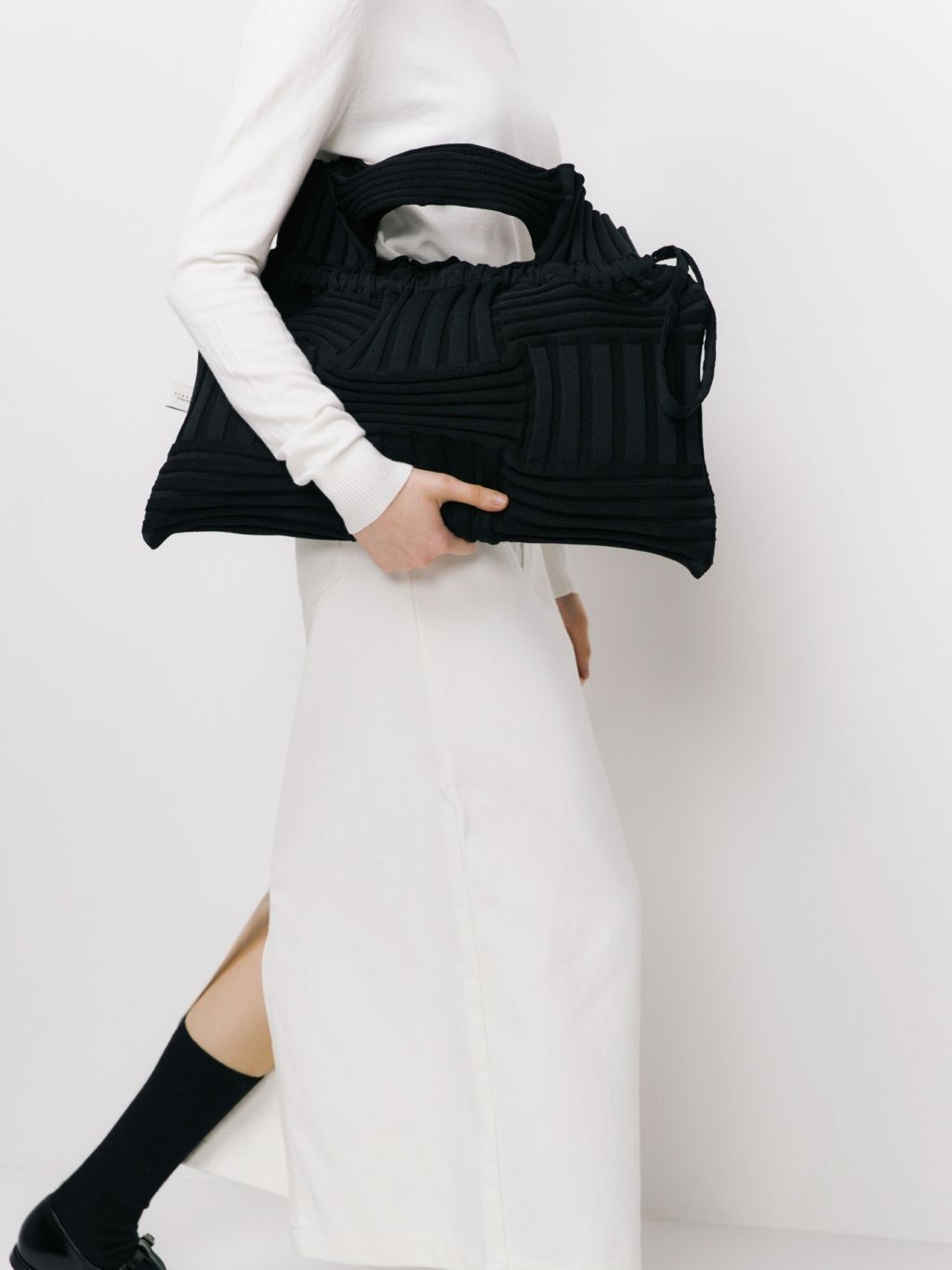 シグネチャーのシワをモチーフにした構造のユニークなパターンとカラフルな色味が魅力的なバッグ。