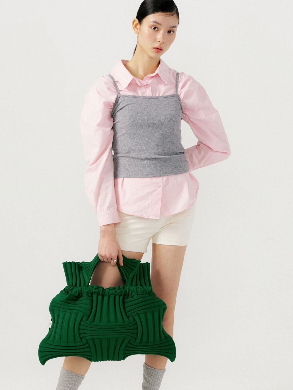 プリーツママは、2017年に設立した環境とファッション性を両立させる韓国を代表するサステナブルブランド。すべての製品に、回収したペットボトルや廃漁網から作られたリサイクル糸を使用し、3Dニッティング技術を採用することで「ゼロウェイスト」を実現。洗練されたデザインと高品質なものづくりを通じて、持続可能なライフスタイルを提案しています。