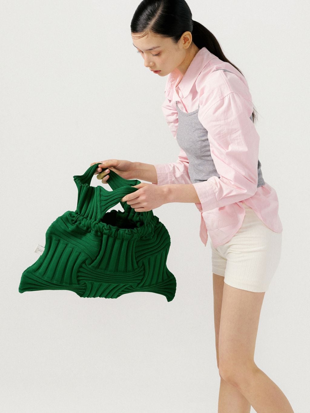 シグネチャーのシワをモチーフにした構造のユニークなパターンとカラフルな色味が魅力的なバッグ。