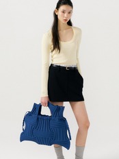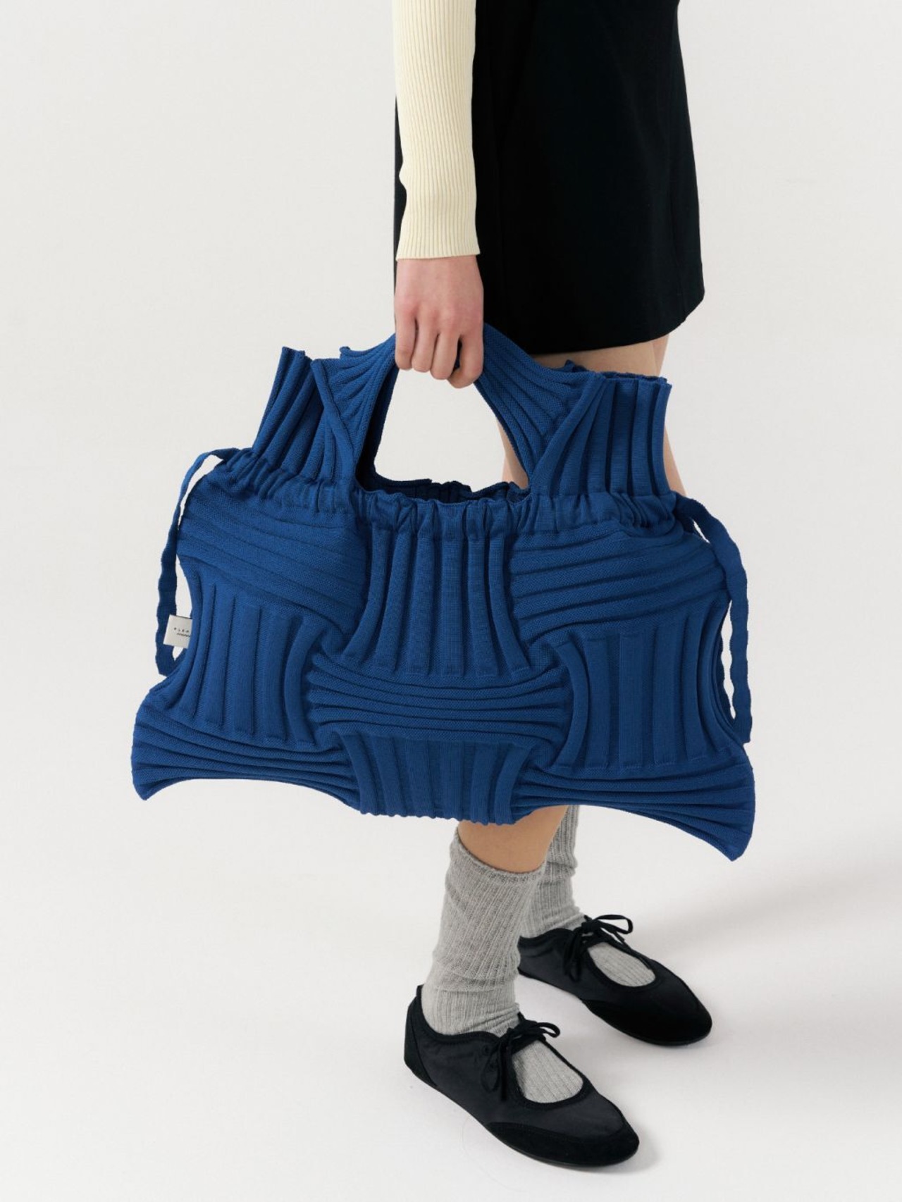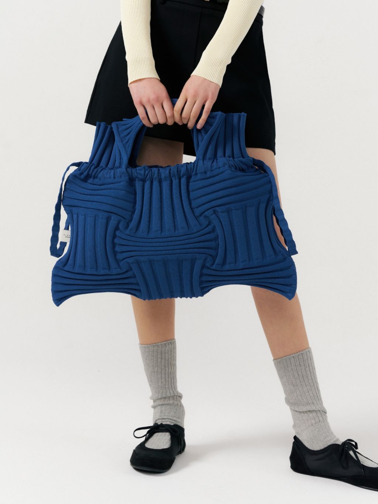 シグネチャーのシワをモチーフにした構造のユニークなパターンとカラフルな色味が魅力的なバッグ。