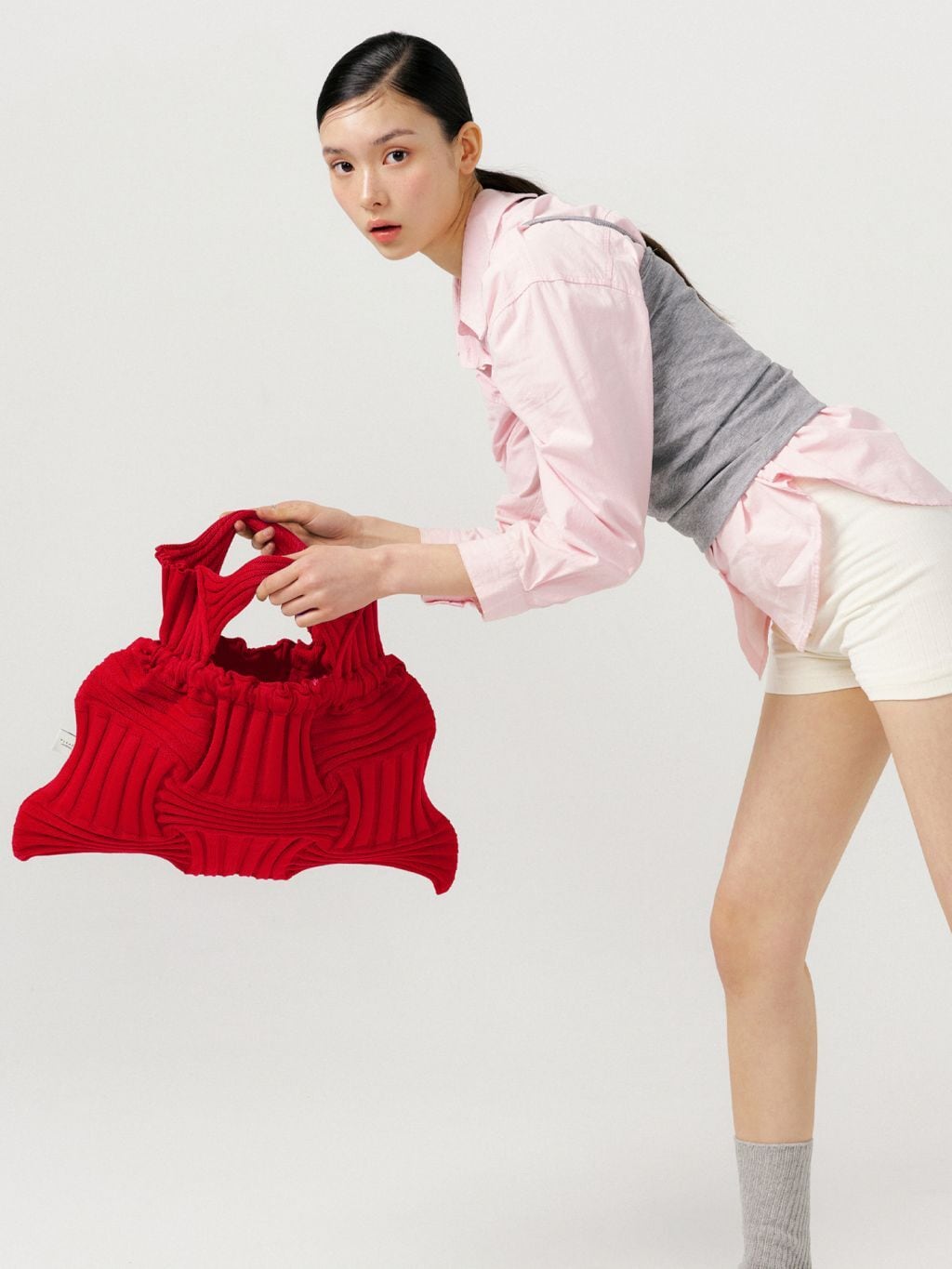 シグネチャーのシワをモチーフにした構造のユニークなパターンとカラフルな色味が魅力的なバッグ。