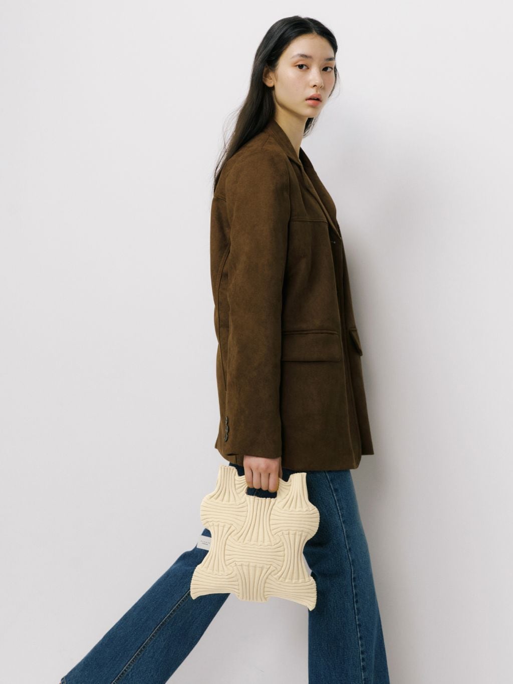 シグネチャーのシワをモチーフにした構造のユニークなパターンとカラフルな色味が魅力的なバッグ。