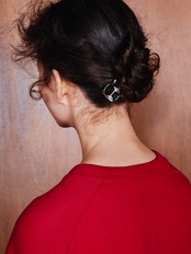 ジルコニア付きのプルトップデザインが、さりげない遊び心を添えるヘアタイ。