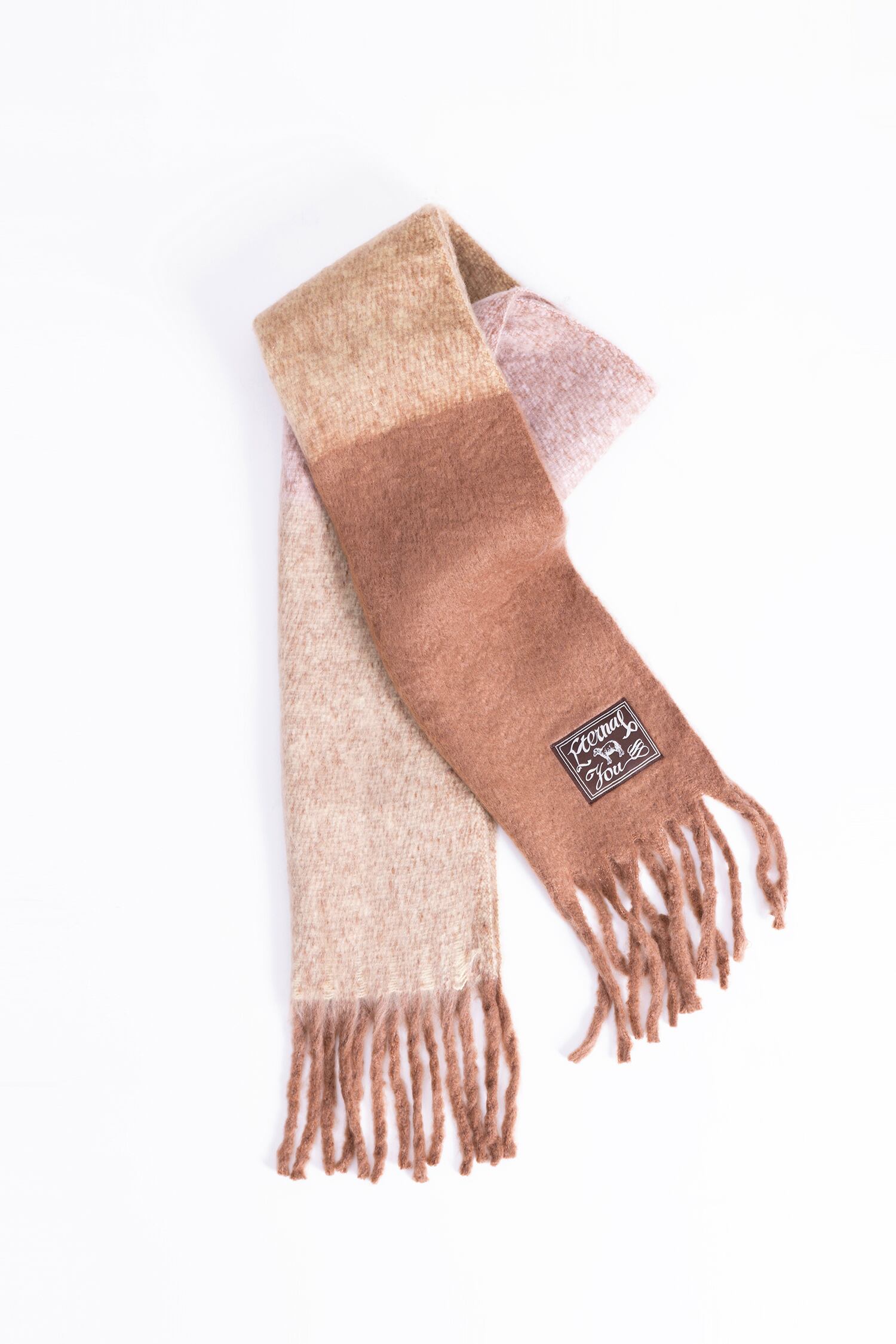 4つのトーンのグラデーションがかわいいマフラー。