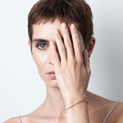 華奢な一本のワイヤーでつくられたブレスレットが上品な印象に。