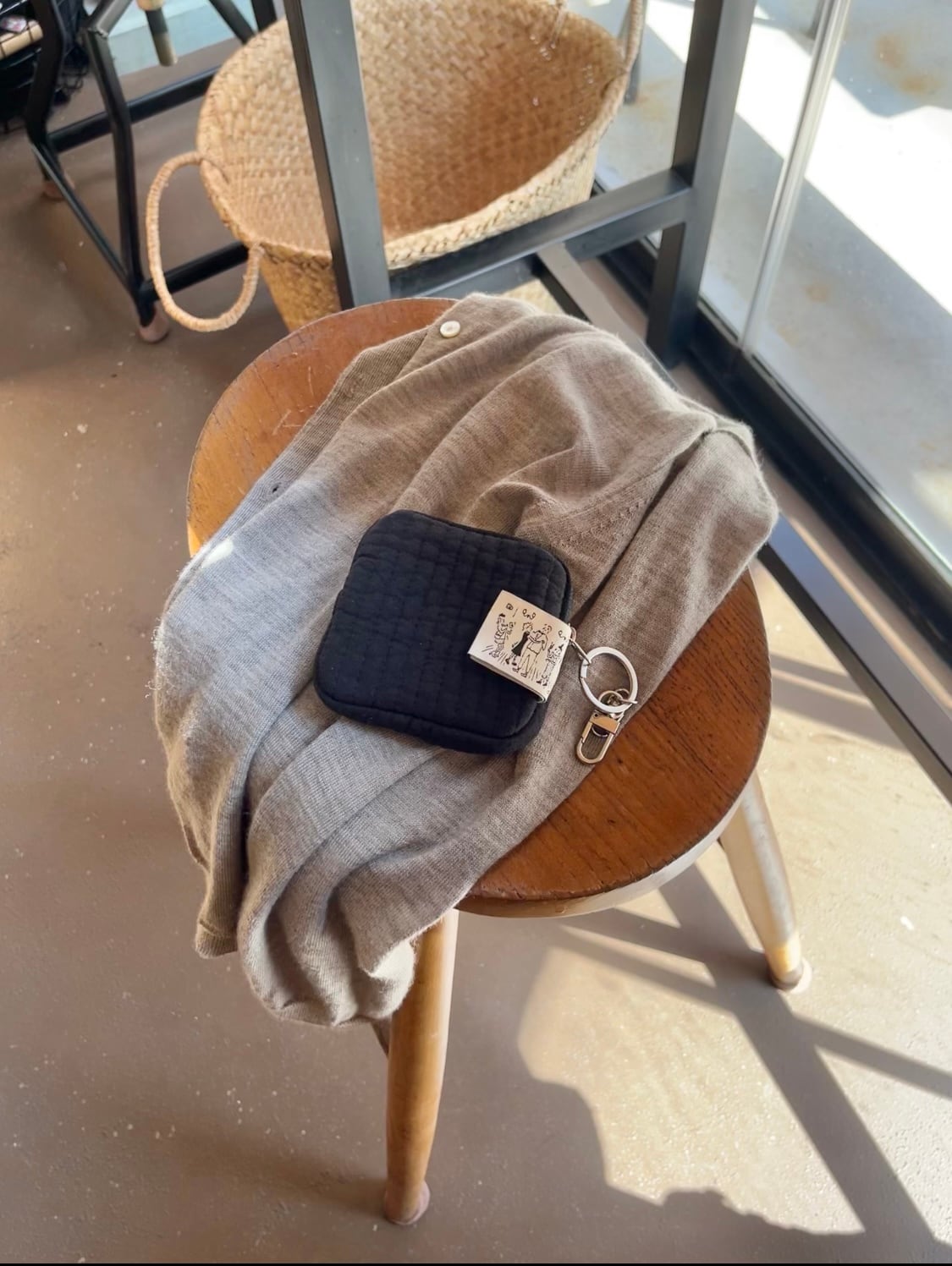 イヤホンやリップなどの小物をまとめて持ち運ぶのに便利なサイズ感です!手描きデザインが施されたラベルが可愛いポイント♡