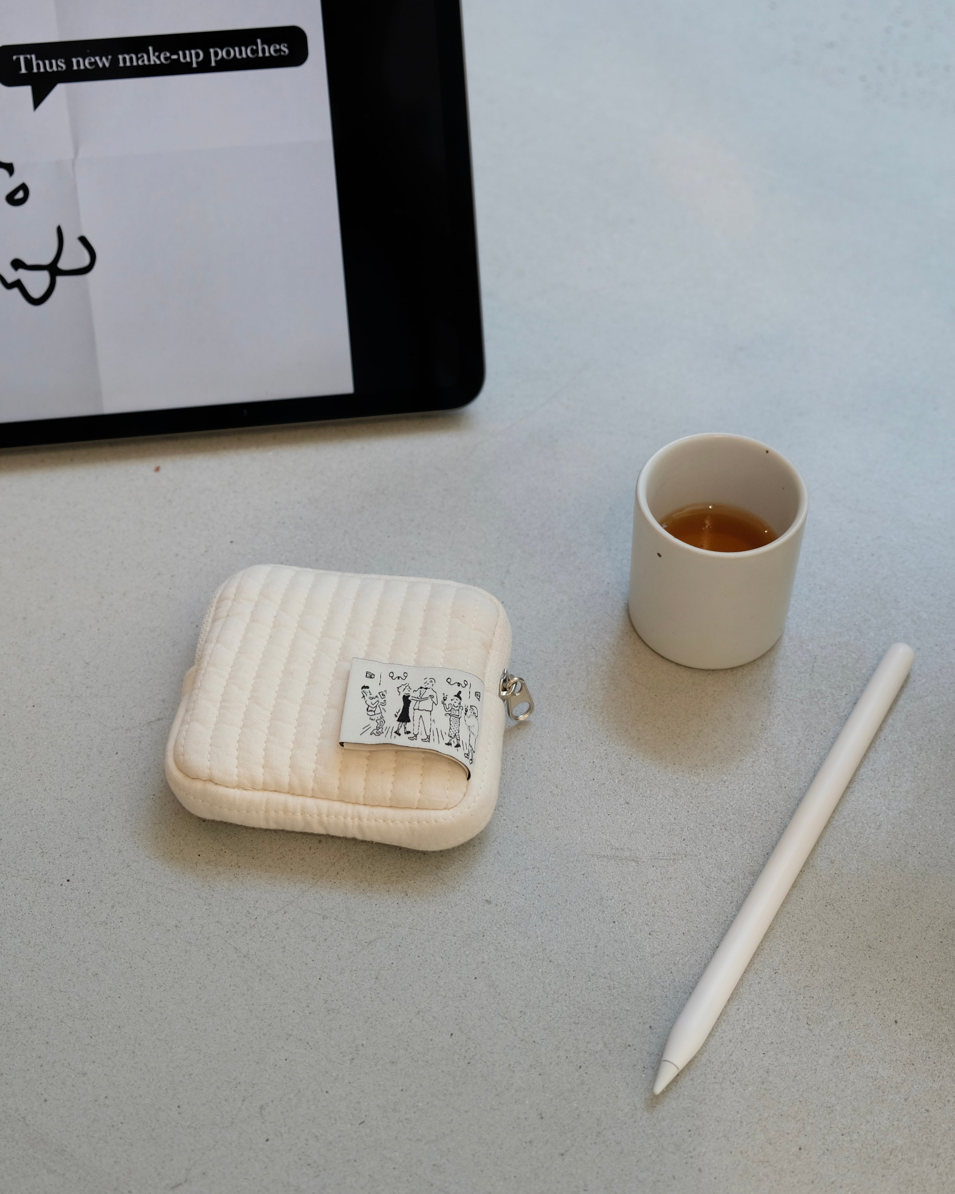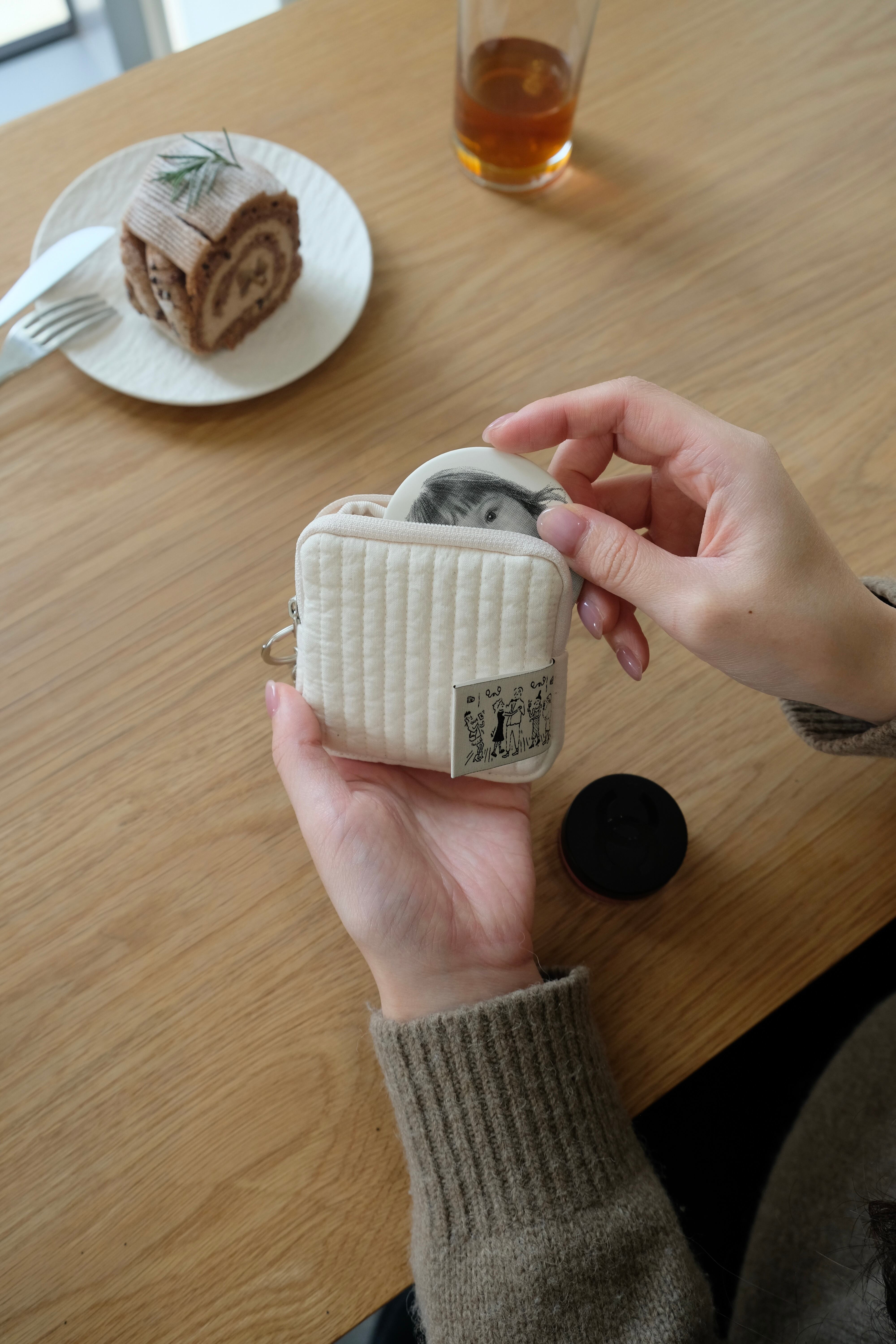 イヤホンやリップなどの小物をまとめて持ち運ぶのに便利なサイズ感です!手描きデザインが施されたラベルが可愛いポイント♡