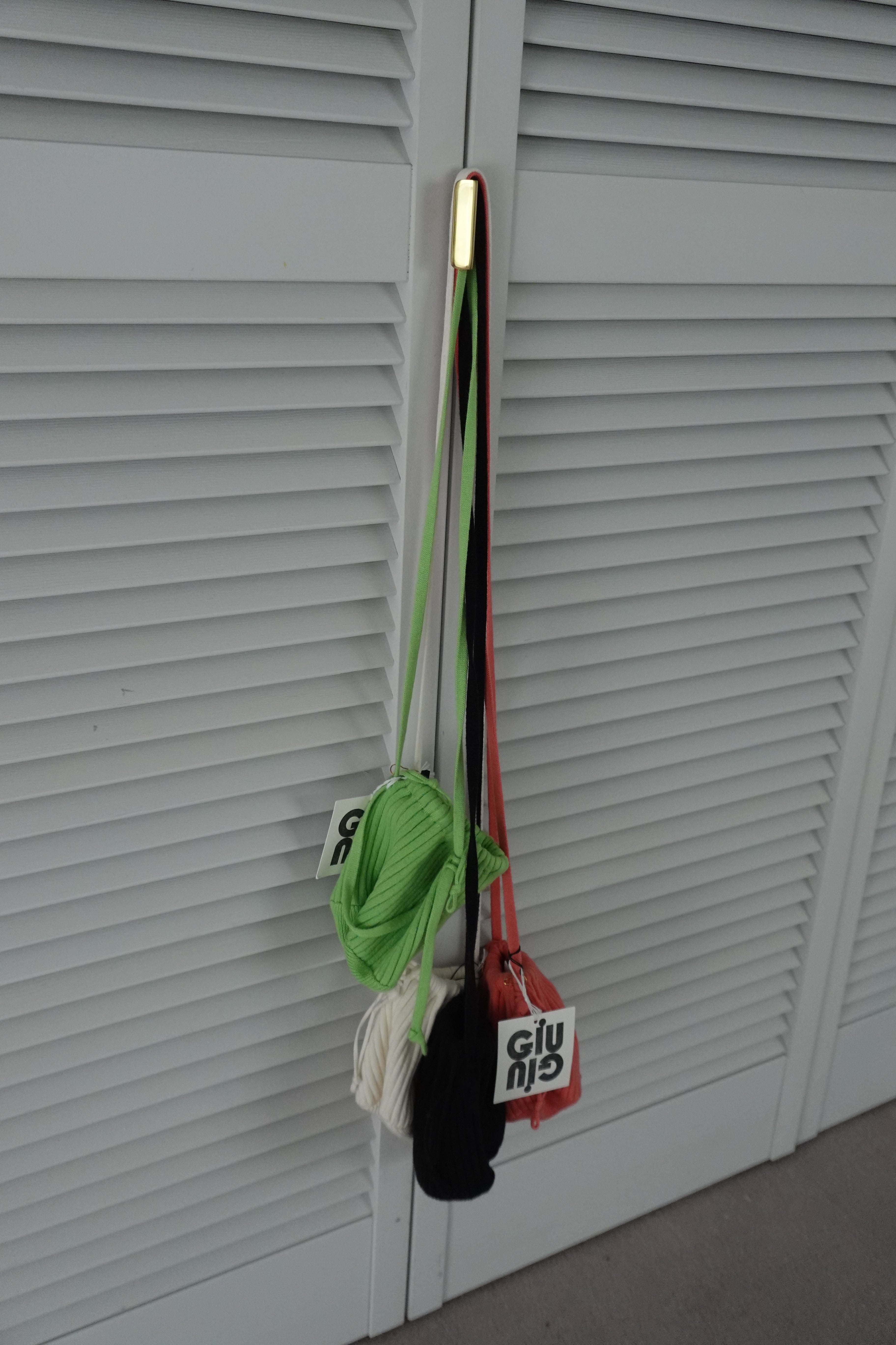 上質なニット素材でできたアクセサリー感覚で使えるミニ巾着バッグ。