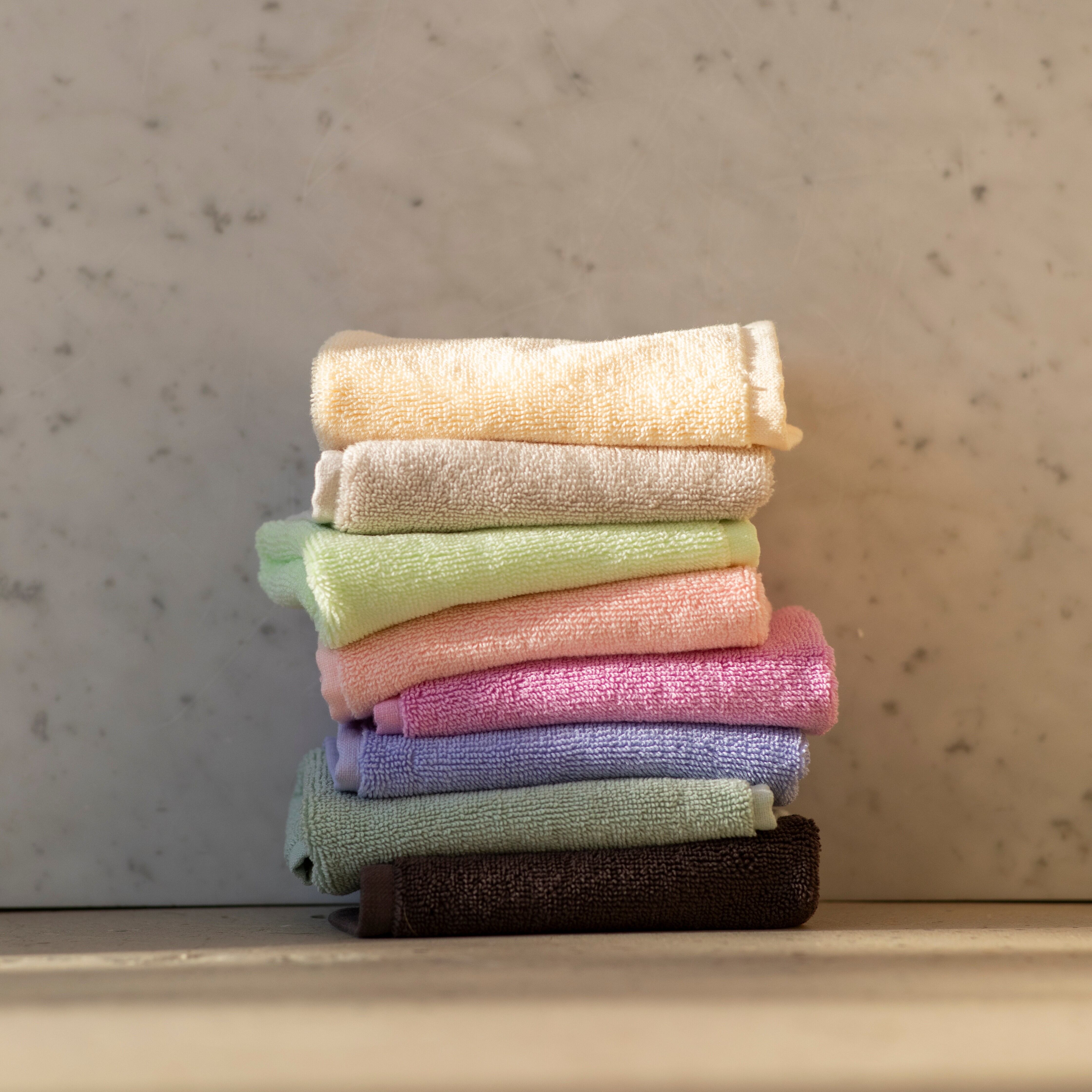 柔らかく吸水性に優れながらもしっとりとした肌触りのコットンタオル。フック等にかけられる便利なループ付きなので外出先だけでなくキッチンやバスルームでも◎。ギフトにもおすすめのアイテムです。