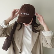 HOHO COCO×UYL別注キャップ。オリジナルメッセージの刺繍をあしらっています。カジュアルすぎず日常のスタイルにも取り入れあすいカラーで展開。