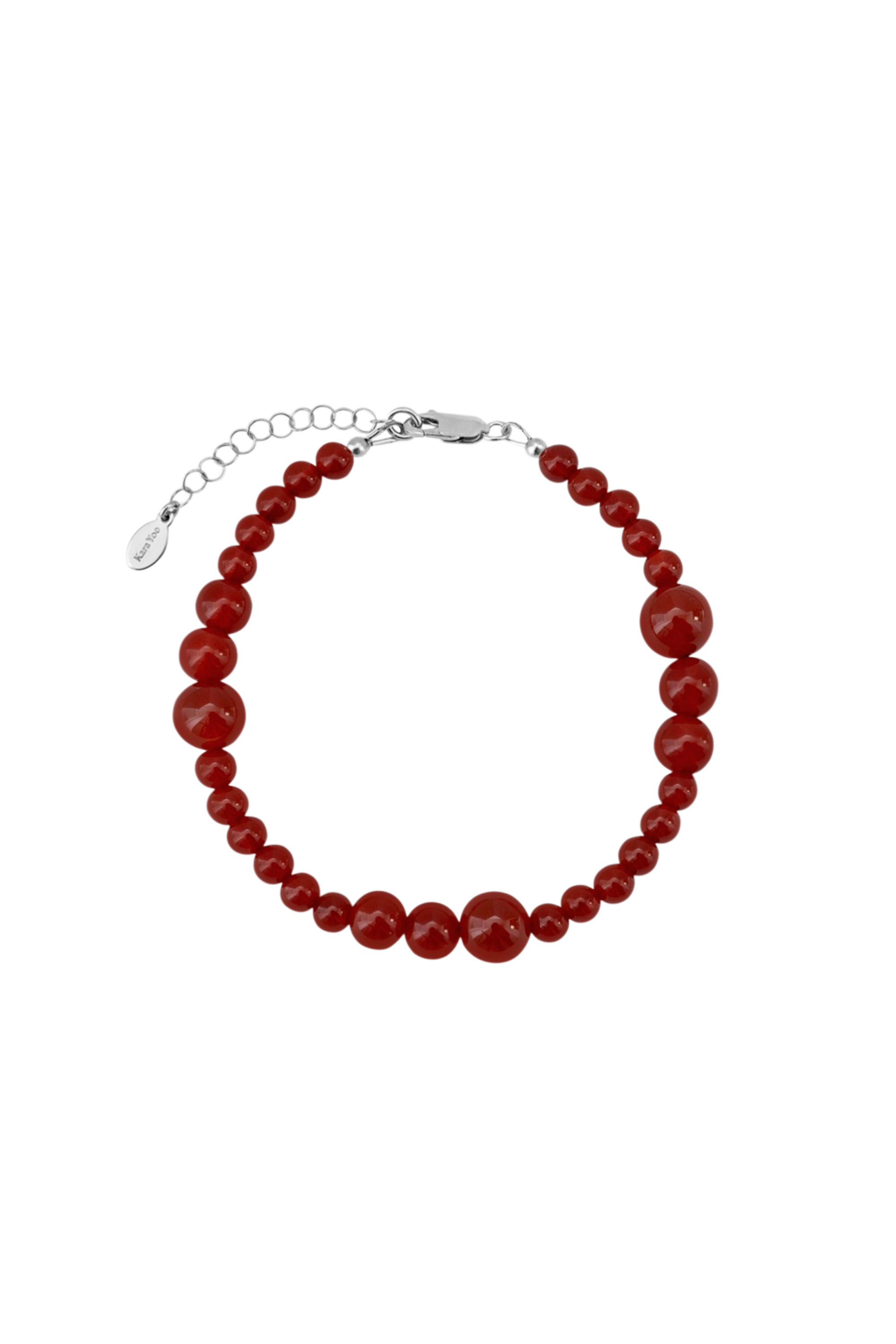 サイズの異なるカーネリアンの深みのあるレッドのビーズよく配置した上品で繊細な印象のブレスレット。さりげなく手元にポイントをプラス。