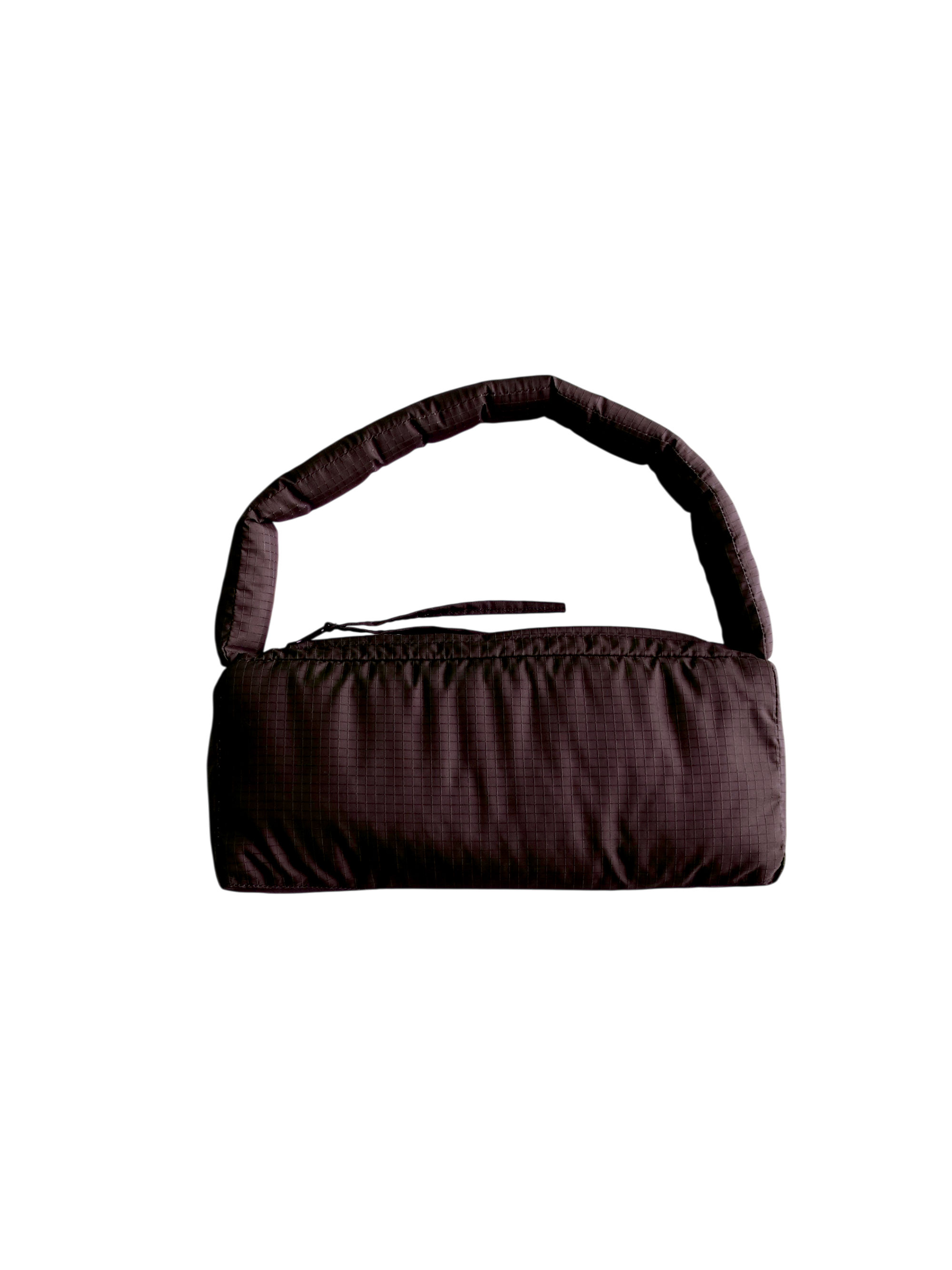 クッションのような、コロンとした丸みのあるパフバッグ。ミニマルなデザインが、コーディネートにさりげないアクセントを加えます。